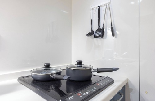 This 1-bedroom, 1-bathroom rental features air conditioning and a desk. Bathroom amenities include a hair dryer, a bidet, and towels. The kitchen is equipped with a stovetop and a refrigerator, as well as an electric kettle, a microwave, and cookware. And thanks to the washer and dryer, you'll even be able to travel light.