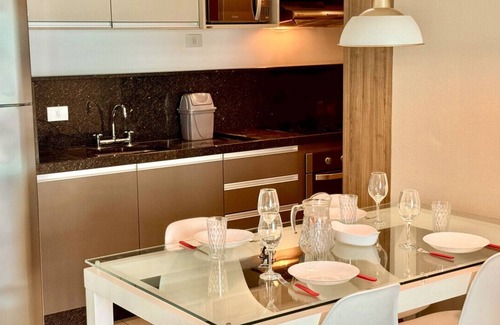 O prédio possui piscina aquecida, sauna, academia, brinquedoteca, e1 Vaga de Garagem e Cozinha Equipada, TV , wifi e ar .