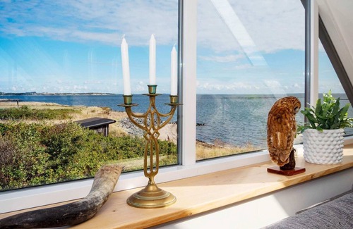 Untraditional and architect-designed cottage located just approx. 5 m from private beach at Thyholm and with magnificent panoramic views of the Limfjord and direct views to Venø. The cottage is exciting and differently decorated, where each floor is a large room, however, with a screen for the sleeping area on the ground floor. Modern furnishings and comfortable bathroom with underfloor heating. The kitchen has i.a. dishwasher. Note there is no TV but wireless internet. One bedroom has 3 single beds pushed together into one large double bed. The cottage has many different initiatives for life by the fjord. For the cottage there are i.a. boat mooring space, so you can bring your own boat and put in the water directly at the cottage. For the warm summer evenings, it is possible to use the cottage's shelter, which is located a little away from the main house, here it is also possible to use a small campfire to heat a little marshmallows. It is completely unique to enjoy the early mornings from the shelter. On the grounds there is also a small & # 8221; hunting lodge & # 8221; where you can enjoy your coffee, or just take a short break on the evening walk by the fjord.