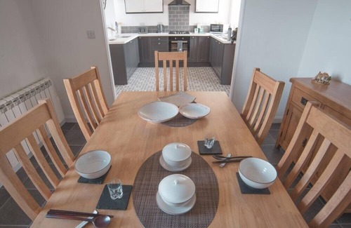Amenities: Electric central heating with woodburning stove. Kitchen with electric oven and grill, gas hob, microwave, fridge, freezer, washing machine, tumble dryer, dishwasher, hairdryer. Smart TV with satellite cable TV, WiFi, selection of books, welcome pack. Fuel and power inc. in rent. Peat, coal or logs available by arrangement. Bed linen and towels inc. in rent. Highchair and travel cot available on request. Private off-road parking. Enclosed gardens with garden furniture. Sorry, no pets and no smoking. Shop 1.6 miles, pub 1.8 miles. Note: Though electricity is included in the rent, electricity for charging cars is not included in the rental. Note: Welcome pack on arrival. Note: Minimum 4-night stays