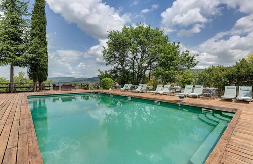 Celebrate in style with heavenly views and contemporary comfort at this traditional villa with outside pool and indoor spa set amidst the Chianti hills.