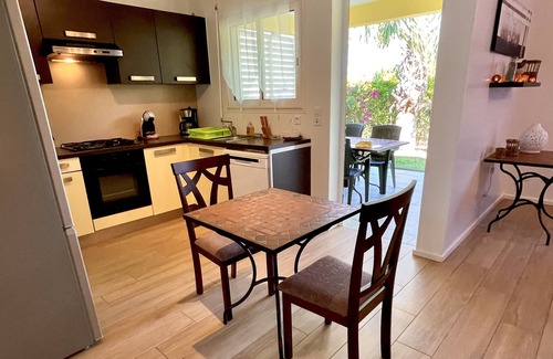 Upscale apartment fully air conditioned, decorated with care. Refined furniture and fully equipped kitchen, high-end bedding and large terrace for lunch and dinner in front of your small private garden.