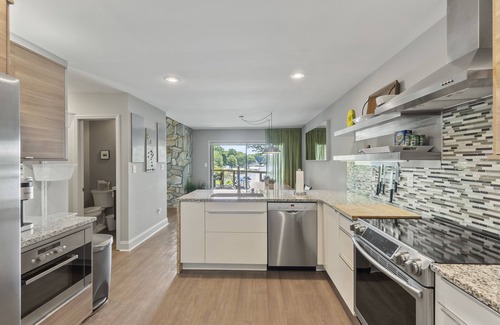 From the moment you enter, the open-concept main level welcomes you with expansive water views and a bright, flowing layout. The updated gourmet kitchen is designed for group gatherings, with bar seating for four and everything you need to prep, serve, and enjoy meals together. Share breakfast at the dining table for eight, or slide open the doors and take it outside to the al fresco dining deck.