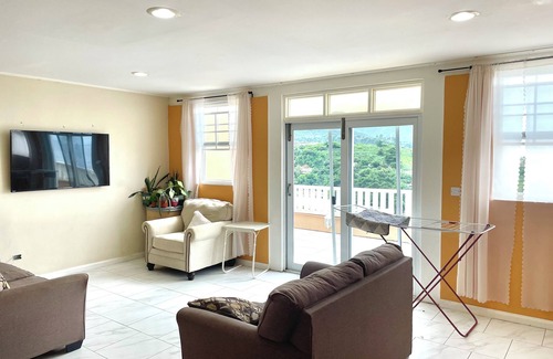 Escape to this stunning 2-bedroom, 1-bathroom apartment blending modern comfort with coastal charm. Nestled 5 minutes away from Roseau, it features a spacious living room offering sweeping ocean views and sunsets. Enjoy your private balcony, a fully equipped kitchen, modern amenities, high speed internet and a convenient location near beaches, stores and resturants.