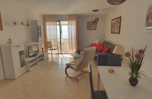 The flat in Benidorm has 2 bedrooms and capacity for 4 people.The apartment is comfortable, is spacious, and has 90 m².Flat in second line of Poniente beach, with spectacular views to the sea, beach and the island of Benidorm. Ideal for family holidays if you are looking for a comfortable place, with lots of light in a very quiet area of Benidorm. It is located in the city, 6 km from the water park "Aqualandia", 50 m from local restaurants", 160 m from the sandy beach "Playa de Poniente", 200 m from the "local" supermarket, 4 km from the bus station "Benidorm", 4 km from the amusement park "Terra Mitica", 4 km from the amusement park "Terra Natura", 4 km from the water park "Aquanatura", 5 km from the nature park "Sierra Helada", 6 km from the amusement park "Mundomar", 8 km from the rocky beach "El Albir", 9 km from the golf course "Altea", 40 km from the train station "Alicante - Renfe", 50 km from the airport "Alicante - Elche" and is located in an ideal area for families and next to the sea.The accommodation is equipped with the following things: lift, fenced plot, terrace, iron, tennis court, central heating with electric radiator, communal swimming pool (during the summer season), communal open-air parking in the same building (no parking space guaranteed for each flat), 1 TV.In the vitroceramic independent kitchen, refrigerator, microwave, oven, freezer, washing machine, dishes/cutlery, kitchen utensils, coffee machine, toaster, kettle and juicer are provided.
