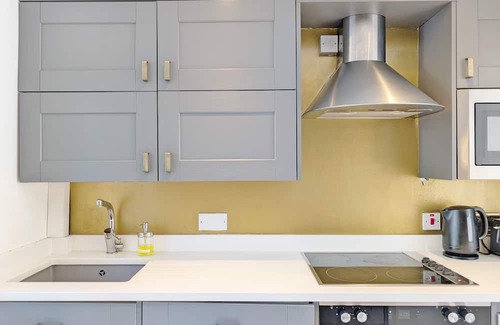 The well-equipped kitchen includes an electric hob and oven, microwave, kettle, toaster, Tassimo coffee machine, and a washer dryer - everything you need to comfortably self-cater your stay.