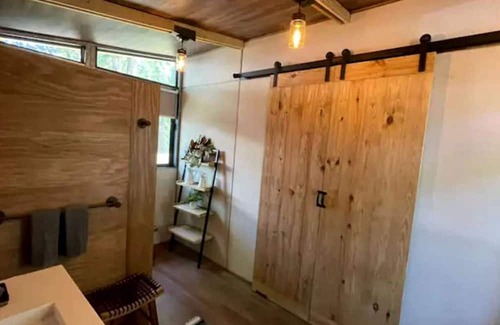 Enjoy nature and the beautiful shores of Lake Bastrop without the inconveniences of camping. Combining luxury with nature, this cabin sleeps six comfortably with custom furnishings, stylish decor, and your own private restroom with a large vanity and shower.