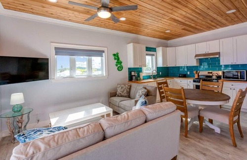 Completed in 2022, Curly Tail Cottage is a beautifully appointed 2-bedroom, 2-bath cottage with laundry, just steps from the beach and fun at Grabbers Bed Bar & Grill. Tucked in the settlement, it’s a short walk to everything you need, including the dock, grocery store and world-famous Nippers Beach Bar.