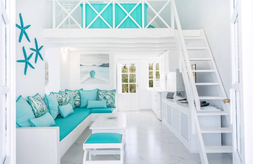 The villa is accessible by car with a private parking area and doesn't require hard walk at the steps of Caldera. Therefore, you have to consider only the internal stairs, which drive you to the lower floor and the loft bedroom. People with mobility problems will face difficulties. What is more, young children must be supervised at all times.