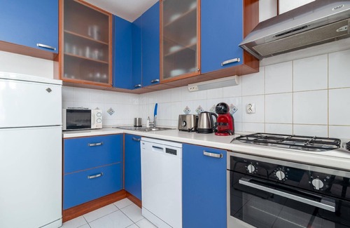 The town centre of Trogir is 4km away and the nearest airport (Split-Resnik) is about 12km away. The apartment is to the south-west of Trogir and Mastrinka on Ciovo, and to the north-east of Slatine. The Arbanija region is known for its beautiful beaches, its forested coasts and many little bays. The nearest motorway access (Prgomet) is 25km away.