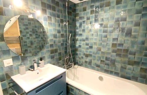 The apartment has a comfortable bedroom with 2 single beds. The bathroom is fitted with a bathtub and a shower. A separate toilet is available