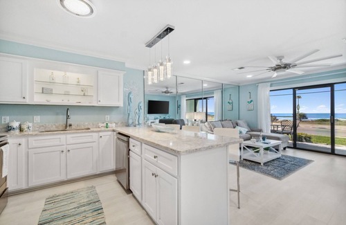 Laguna Dunes is a luxury beach rental located on Front Beach Road, the Emerald Shores Condominium Complex, next to Carousel Market. We are centrally located near West End favorites Thomas Donut, The Old Beach Bar, Pho 77, and the Sunnyside Grill. Amazing unobstructed gulf views over the protected dunes from the kitchen, living room and patio. Fully stocked kitchen provides everything you need and more! Stainless steel appliances, granite counter-tops and oversized breakfast bar with stools. Master Suite with “Hollywood” style bath. Washer - Dryer in unit. Lots of closet space. Additional sleeping options include two large bunk beds and a sofa sleeper in the living room. Sleep up to six.