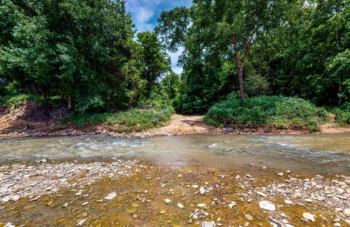 Take in 180 degrees views of the surrounding land and valleys from the deck of the hillside cabin. Enjoy direct access to the water with a fishing pond (bring your own gear) and a channel that leads all the way to a lake when the water levels are high. Launch one of the provided kayaks or canoe, or bring a smaller boat, like a Jon Boat, for fun on the water (check that there’s been enough rain).