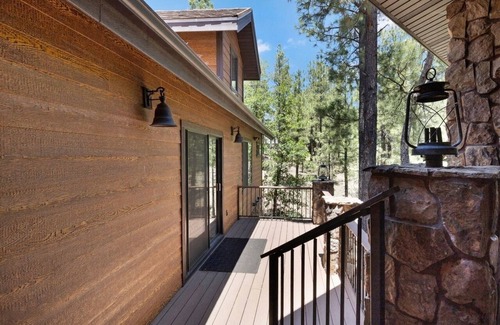 Welcome to your private mountain escape in Heber, AZ. This stunning 7-bedroom, 7-bath lodge-style cabin sits on 4.5 secluded acres surrounded by towering pines, perfect for family reunions, retreats, and large group getaways. Each spacious bedroom includes an en-suite bathroom for ultimate comfort and privacy. The great room features vaulted ceilings, a cozy fireplace, and forest views, while the gourmet kitchen offers dual fridge/freezers, granite counters, and plenty of space to cook for a crowd. Enjoy morning coffee or evening s’mores on the expansive deck with outdoor fireplace. Located minutes from Hwy 260, guests enjoy easy access to hiking trails, lakes, local dining, and year-round outdoor adventure. Modern amenities include heated bathroom floors, central A/C and heat, Smart TVs, and high-speed Wi-Fi. With peaceful surroundings, abundant wildlife, and space to gather and relax, this Heber cabin offers a luxury experience in nature.
