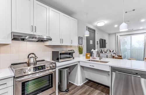 This bright condo's tasteful decor will make sure you remember why you came to Music City with its black and white cityscape artwork and musical accents. You'll also be treated to a real-life city view from the private third-floor balcony and bedroom. So, throw on your cowboy boots and head out on the town; you're less than two miles from Nashville's top attractions.