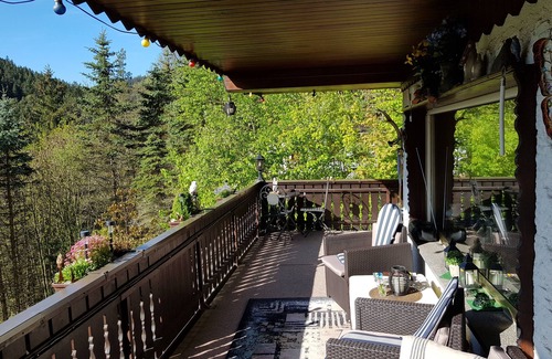 or just on the covered large balcony (south-west location) enjoy the fresh forest air and look into the valley, switch off from everyday life - so should be vacation.