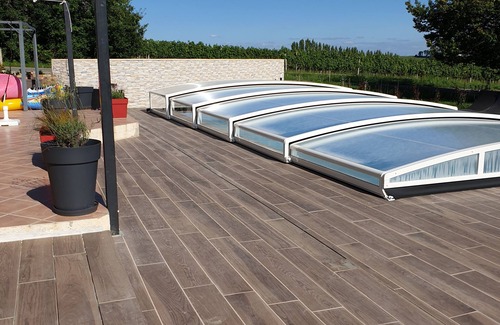 Cottage in the middle of vineyards with swimming pool 4 x 10 with balneotherapy and swim against the current, a garden and playground for children (football cage, swing, petanque) inside you will find a kitchen oven, micro oven, fridge freezer combi, senséo coffee maker, washing machine, dishwasher, sitting area with TV, DVD player, free wifi, upstairs 3 bedrooms 2 with bed 140 and 1 bedroom with bunk beds and 2 bathrooms water.
