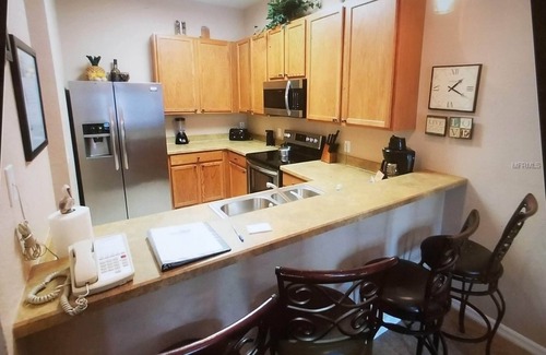 3 bedrooms, 2 bathroom condo 2nd floor of Bahama Bay Spa & Resort. Comes fully furnished, w/a private balcony off of the living room and the master bedroom. Master bedroom has a walk-in closet & ensuite bathroom. Updated with major kitchen appliances & an in-unit laundry. Community has many amenities to enjoy: a clubhouse, fitness center, multiple community swimming pools, sand beach, tennis & basketball courts, shuffleboard, paved nature trails and a full-sized fishing dock on Lake Davenport.