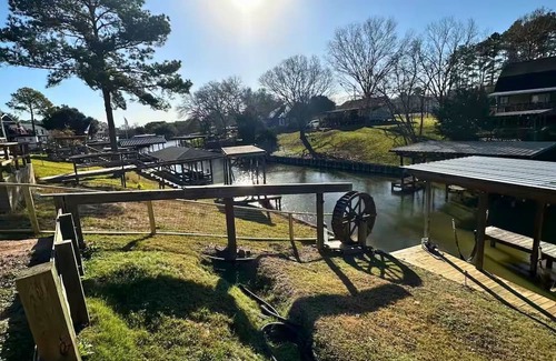 Escape to this peaceful lakefront retreat, perfect for family and friends. This spacious home sleeps up to 10 guests and offers stunning lake views, a cozy living area, a fully equipped kitchen, and plenty of outdoor space to relax. Enjoy fishing from the boathouse, kayaking, or bringing your boat for skiing and sunset cruises. Unwind under the covered patio or gazebo with swings. Whether you’re seeking adventure or relaxation, this lakeside getaway is the perfect place to make lasting memories