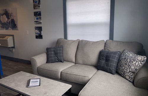 Located at Creek Side Resort, our new single story suites are the perfect unique option for any kind of traveler. This cabin is equipped with a King bedroom and chaise lounge. Guests have private access, with access to check-in even after hours. All reservations allow guests to enjoy property amenities including our seasonal Outdoor Movie Theatre, duck pond and more to come!