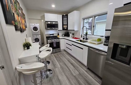Located in Hicksville, enjoy what this 4-bedroom house has to offer. This serene property features 2 king beds, 2 twin beds, 1 crib, and 1 bunk bed. With heating, AC, and other nice amenities, guests can relax in the 2 bathrooms with showers and hair dryers. Unwind in the living room with a sofa bed and futon. Experience the magic of Hicksville at our house.