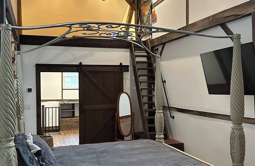 This farmhouse in Vienna offers a cozy retreat for guests. The 1-bedroom property features a comfortable queen bed, a well-equipped bathroom with a shower, and a charming living room with a futon for additional sleeping space. Enjoy the convenience of amenities like a hair dryer, iron, AC, and heating during your stay. Fall in love with Vienna and enjoy the magic it has to offer. This is a working donkey farm on 120 acres. There ducks,donkeys,horses,goats,dogs,cats,chickens and a few other things running around here.There’s a lake to fish and fishing poles supplied.Feel free to walk around and see the animals.