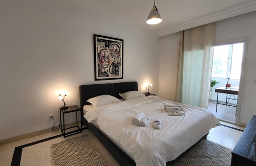 This apartment is the ideal accommodation in the heart of La Marsa. Completely refurbished with high quality furniture, it is ultra central and fully equipped. The apartment has a living room and balcony with partial sea view, a bedroom with a full view. You will have access to all amenities on foot: municipal market, supermarket, shopping center, several restaurants and cafes. The beach is a few minutes away. It is the ideal accommodation for a great stay