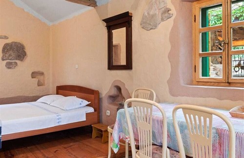 The cottage has two terraces. One is in the front of the house with one piece of stone table and a stone bench where you can rest in the shade of the grapes enjoying the sea view. The second terrace is on the side with an outdoor grill and a big wooden table where you can have dinners outside enjoying your freshly baked fish from the grill. Both terraces are covered with tiles offering intimate coziness and shade protection from the sun. There is a private yard of approximately 1500 square meters with bushes of lavender, sage, and other local plants and herbs. There is a garden at our guests’ disposal with local herbs and seasonal vegetables from which you are invited to pick.