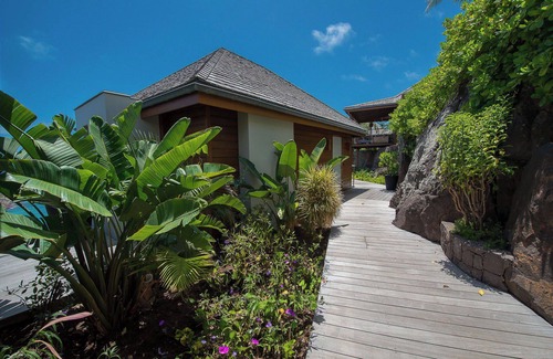 The outstanding villa JADE was built on several levels and spreads over five buildings that encompasses eight air-conditioned bedrooms with ocean views. All bedrooms are custom-made with their own unique theme, and are very luxurious, as true works of art with the same soft Asian influenced atmosphere that is found throughout the villa. The main pavilion has a family wing, with the main master bedrooms and two bedrooms dedicated to children. These three bedrooms are near the living area and overlook the terrace. Four other master suites are located in separate and private pavilions, also furnished and decorated with taste. One last suite is located in a lower bungalow that can be dedicated for staff or teenagers.